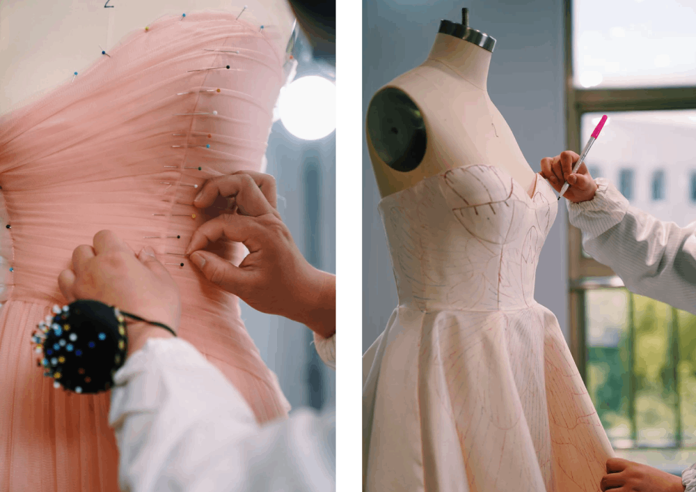 للون قوة يمكنها أن تمس الأحاسيس وتثير المشاعر، وبالمثل التصميم فله القدرة على التأثير وتشكيل الانطباعات. في قصتنا "الهلال" يلعب دوراٌ هاماُ فمنه استلهمنا الأساس الفلسفي ,بانحناءاته الفريدة شكلنا جزءًا هامًا من العناصر الهيكلية في كل ما تقدمه الدار، - من الشعار والهندسة المعمارية للبوتيك، إلى الأنماط الدقيقة وحواف الفساتين في أعمالنا. هذا الانحناء الناعم يذكرنا بشكل البتلة، الذي يتميز بأنه منظم ولكنه حر في الوقت نفسه، غير مقيد ولكنه يحافظ على جوهره الثمين. مثل الزهرة التي تتفتح لتصل إلى ذروة الازدهار، نطمح نحن في الدار لإلهام التحول الذاتي والاحتفاء بالقوة الداخلية.