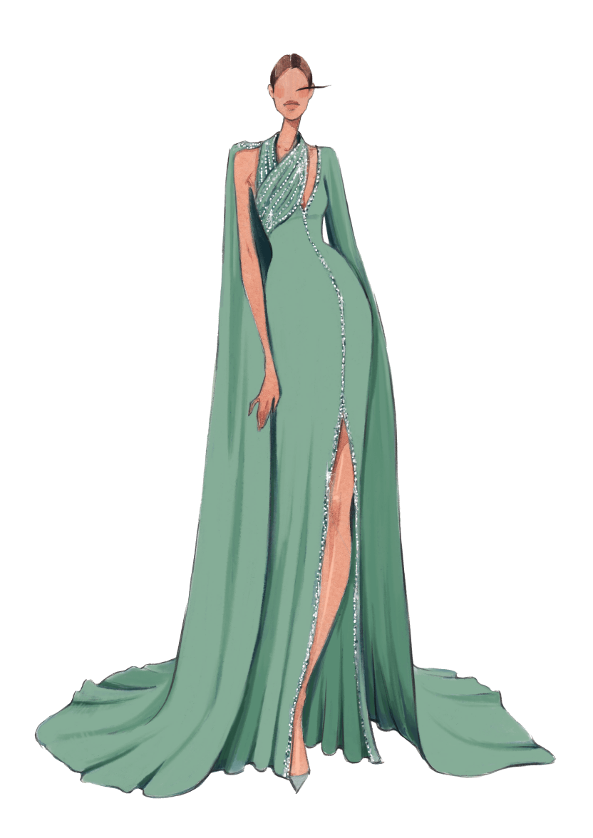 Co-Creative Directors Ahlam and Waad Aloqaili looked to the turn of the Millennium for inspiration, opting for fluid fabrics and glistening adornment to evoke excitement and transformative energy.