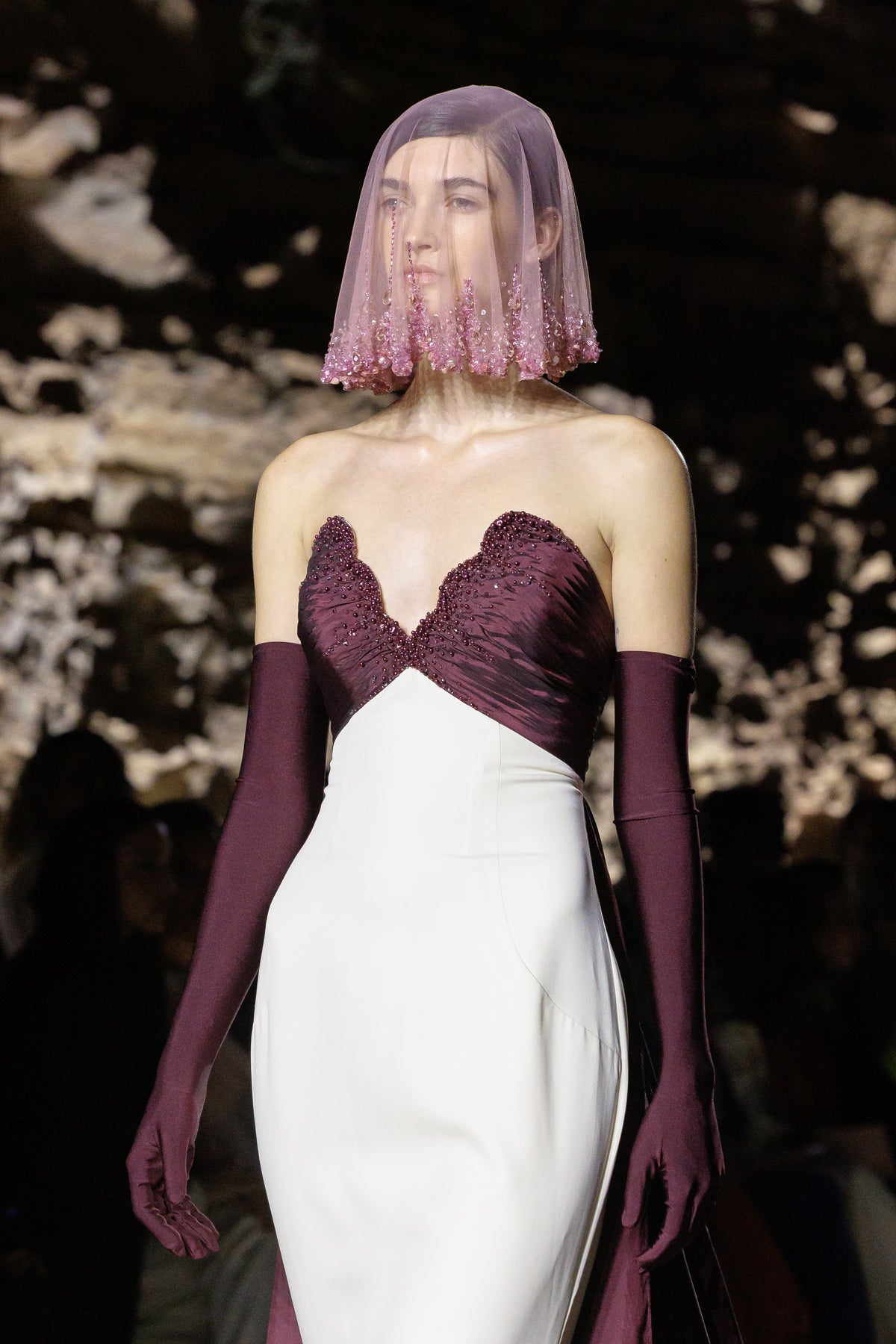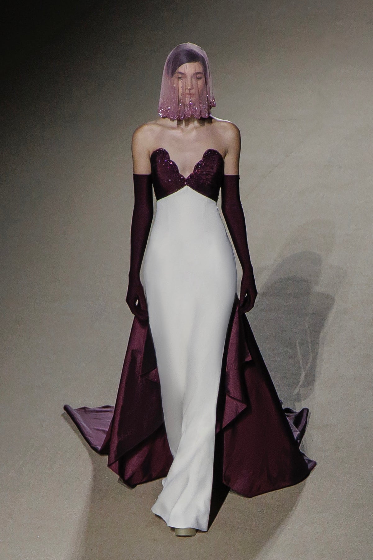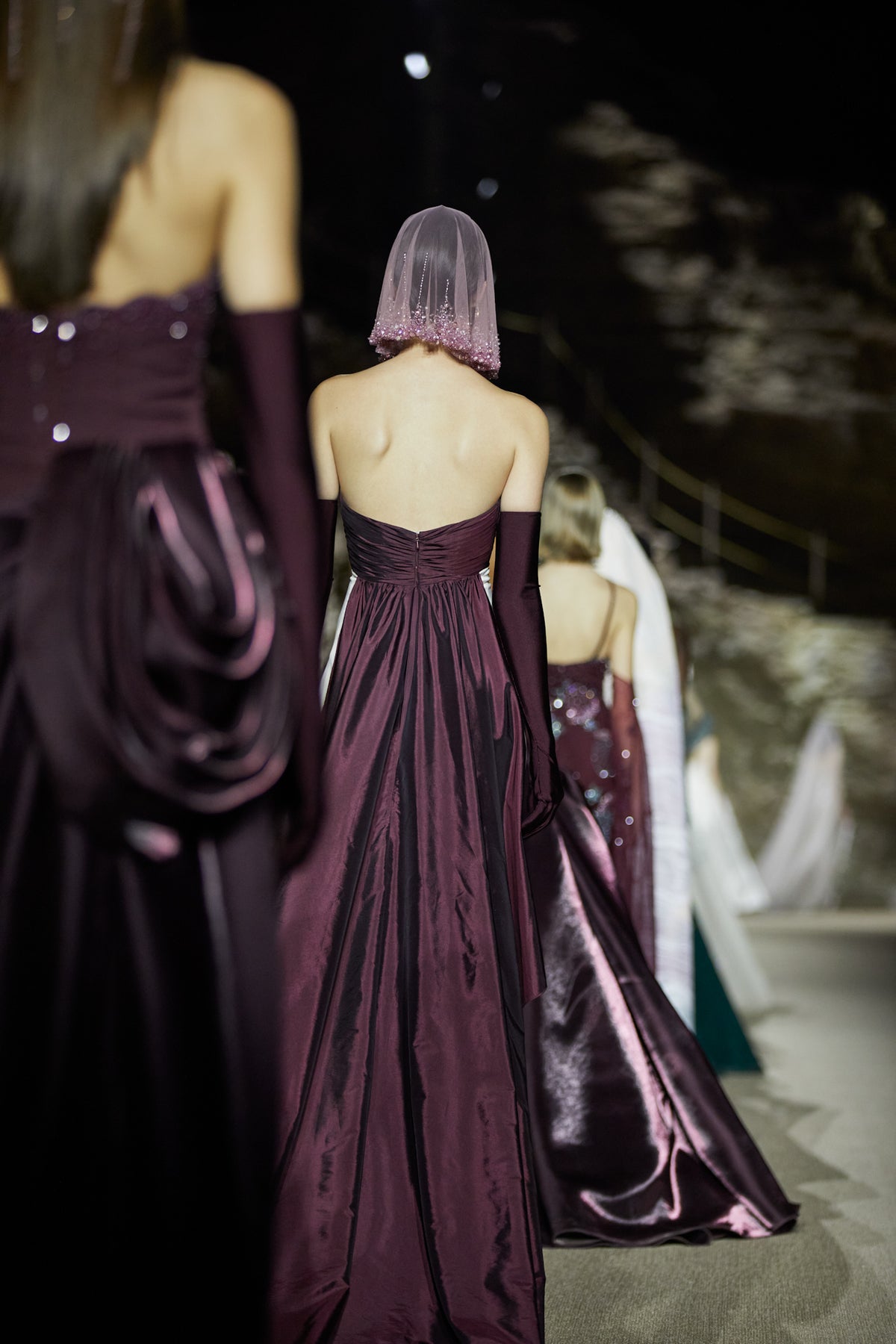 Handcrafted by a team of skilled couturiers, the gown reflects couture defined by material continuity and balance.